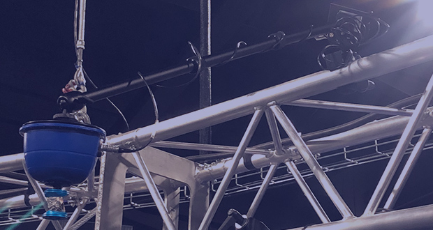 Setting up an AirPixel system in a large venue takes hours instead of days. Beacons can be mounted on stand-alone tripods or attached to rigging structures such as trusses. There is no need to connect the beacons in a network and the beacons can run of a battery or individual power supply.